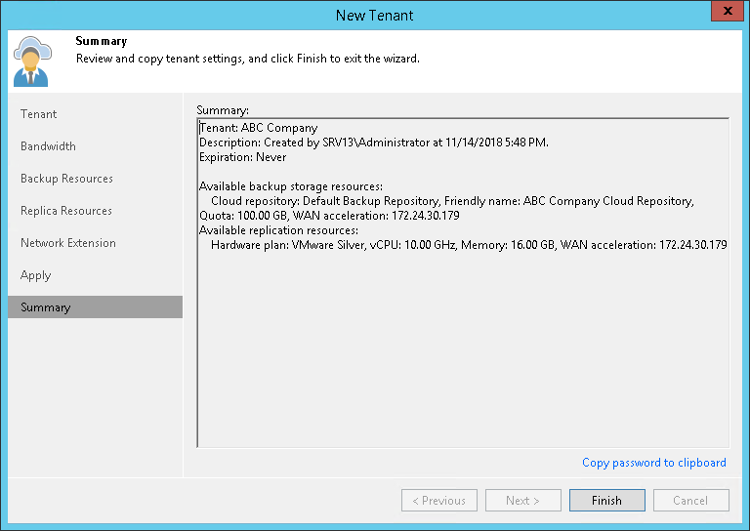 Review the summary and click Finish.